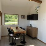 The chalet’s fully equipped kitchen makes self-catering easy, with a gas stovetop for cooking plus an air fryer and microwave for quick meals. You’ll also find a fridge-freezer, cookware, and all the tableware you need. Just steps away, the spacious dining area features a large table perfect for group meals, après-ski gatherings, or planning the next day’s adventures.